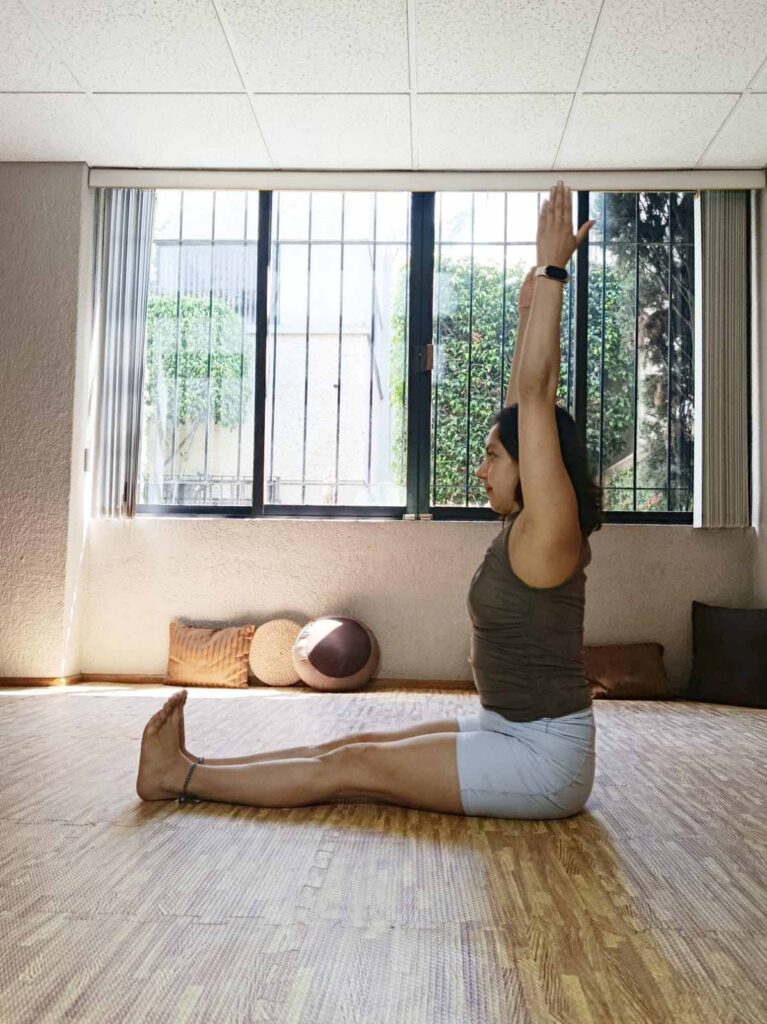 Urdvha hasta dandásana, postura del bastón con manos alzadas